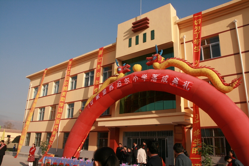 據了解,青海甘家堡蘇泊爾小學是由浙江蘇泊爾股份有限公司出資80萬、總裁蘇顯澤出資20萬元、青海省互助縣政府出資50萬歷時一年建成的現代化全日制小學,學校建筑面積5380平方米,校舍均為磚混結構,其中教學樓建筑面積1090平方、教工樓等建筑面積310平方,校園綠化面積達1000平方米,環境優美宜人。設有標準籃球場、彩磚硬化場地、電算化教室。并為學生和老師購置255套桌椅、3000冊圖書,30臺電腦。是海東地區硬件設施、師資力量最好的農村小學。