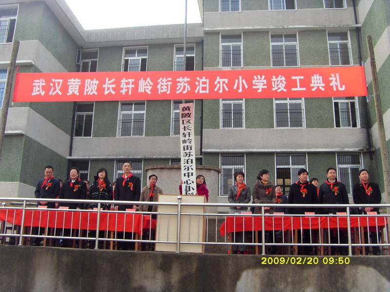 2月20日上午,多日連綿陰雨的武漢終于陰霾盡掃,迎來陽光普照。這一天上午,由蘇泊爾公司援建的武漢市第一所蘇泊爾小學在黃陂區長軒嶺鎮舉行了簡樸隆重的竣工揭牌儀式。