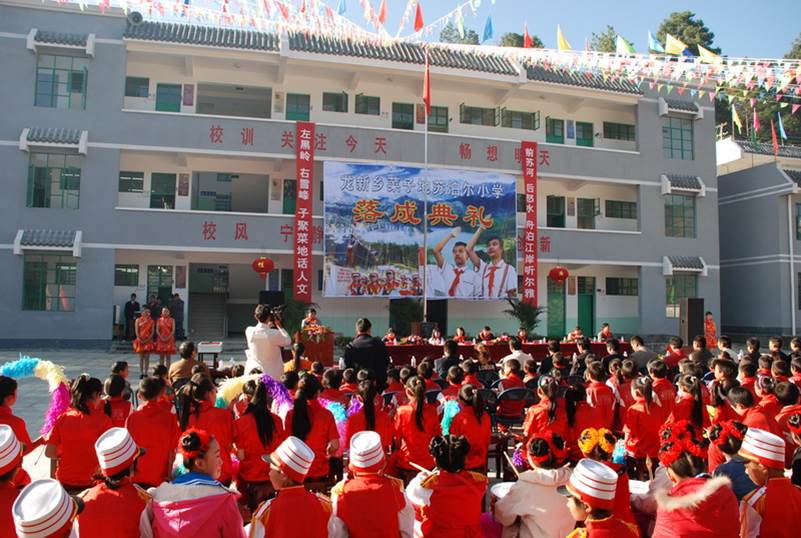 11月11日上午,保山市龍陵縣龍新鄉菜子地村和過年過節一樣熱鬧,小山坳上新建成的菜子地蘇泊爾小學新校園里,少先隊員敲響熱烈的鼓樂,一棟3層教學樓和左側綜合附屬樓上彩旗飄飄,村民像過節一般來到校園里,參加新校園落成典禮。