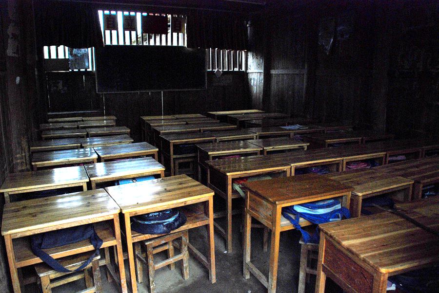 木樓校舍教室狹小,光線不好,且隔音效果差,隔壁兩教室上課,互相都能聽得一清二楚。隨著年份日久,各教室間隔板縫隙也日漸增大,不利于師生正常教學(xué)。且原校舍位于苗寨中,與村民屋舍建在一起,校園面積只有一個(gè)籃球場大小,沒有圍墻,村民經(jīng)常牽著牲畜從教室門口經(jīng)過,時(shí)常會(huì)影響到孩子們的學(xué)習(xí)。