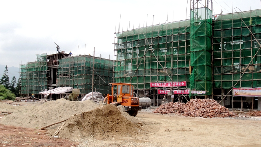 規(guī)劃確定之后,施工隊(duì)開始了工程浩大的土方平整工作,夷平了半座山坡,開辟出能夠建設(shè)學(xué)校的地盤。在這個(gè)離縣城要四五個(gè)小時(shí)車程的偏遠(yuǎn)山區(qū),施工方耗費(fèi)了許多心力。一到下雨,上山的土路就滑得不行,運(yùn)送建筑材料的師傅要一邊修路一邊運(yùn)貨。學(xué)校建設(shè)至今,上山的三條路幾乎都被施工方修了個(gè)遍。山上電力不足,施工方自帶的發(fā)電機(jī)也燒壞了好幾個(gè)。經(jīng)過一年多緊張而艱難的建設(shè),帶有民族特色的林浪小學(xué)新教學(xué)樓、食堂、宿舍樓等逐步建成。2014年10月,學(xué)校正式完工,老師和孩子們搬進(jìn)了新校舍。