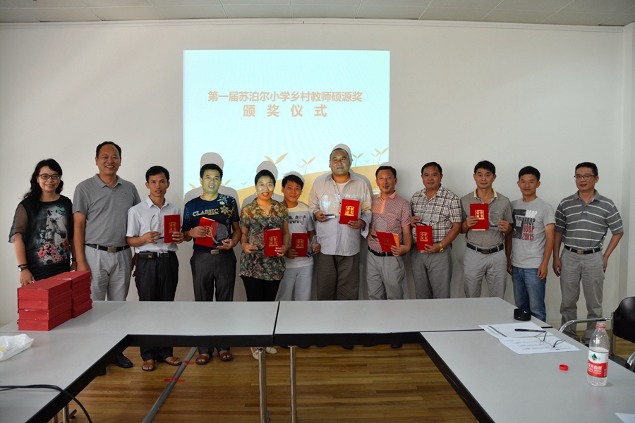 浙江碩源教育基金會(huì)李伯俊秘書長(zhǎng)、許曉冰監(jiān)事,蘇泊爾小學(xué)項(xiàng)目顧問(wèn)、縉云長(zhǎng)坑小學(xué)劉勇武校長(zhǎng)出席儀式并給老師們頒獎(jiǎng),與老師們親切座談。