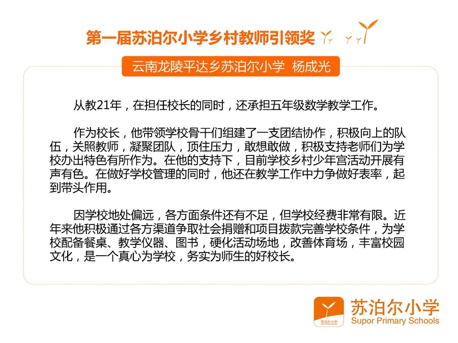 附:第一屆蘇泊爾小學(xué)鄉(xiāng)村教師獲獎(jiǎng)教師簡(jiǎn)介