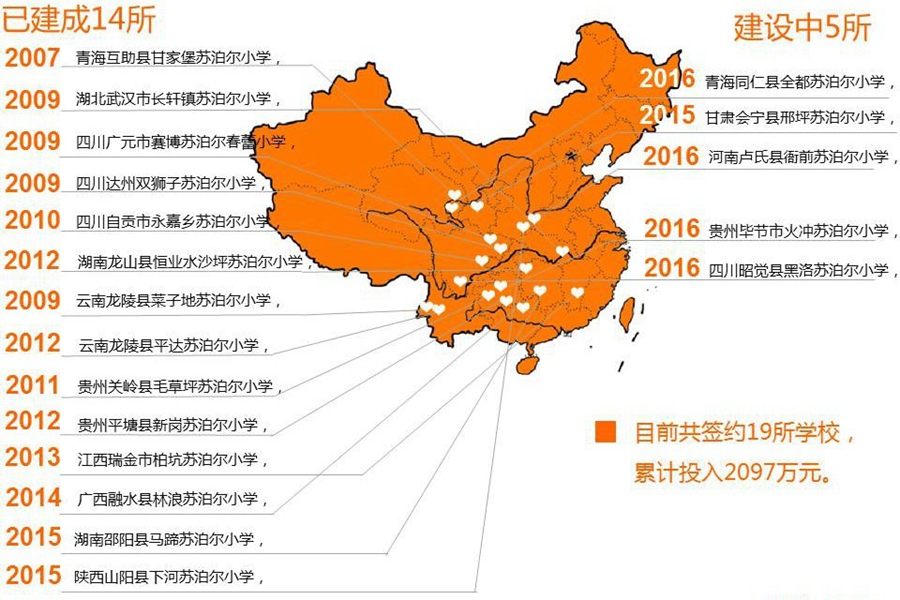下河蘇泊爾小學是蘇泊爾公司及碩源基金會共同捐資建成的第14所蘇泊爾小學。目前蘇泊爾共已簽約捐建19所山區(qū)農(nóng)村小學,其中5所還在建設(shè)中。蘇泊爾的公益之路將繼續(xù)前進。