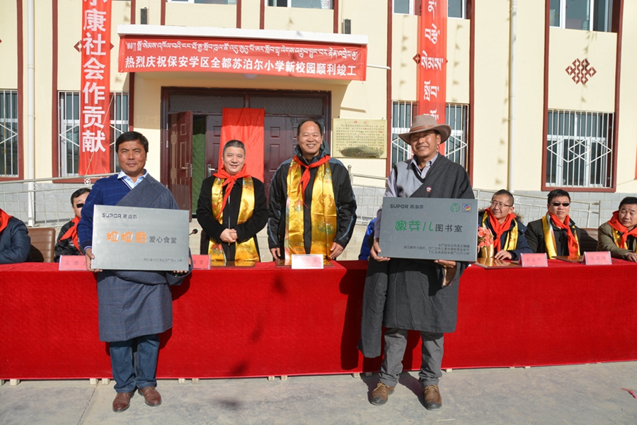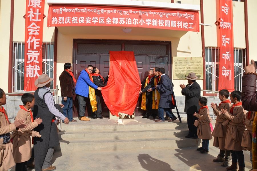 山路蜿蜒,情誼綿長。這個給藏家孩子們帶來冬日溫暖的新學校,凝結了許多的社會愛心。11月24日,是新校園舉行落成典禮的日子。這一天,蘇泊爾公司林總、碩源基金會李秘書長、持明基金會司總、西寧萬捷郭總、西寧志恒張總一行愛心企業和基金會的代表,一起來到了這個海拔3300多米的小山村,與老師和孩子們共同慶祝新學校的落成。