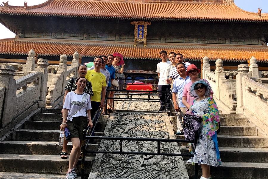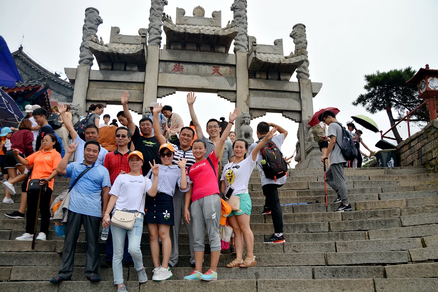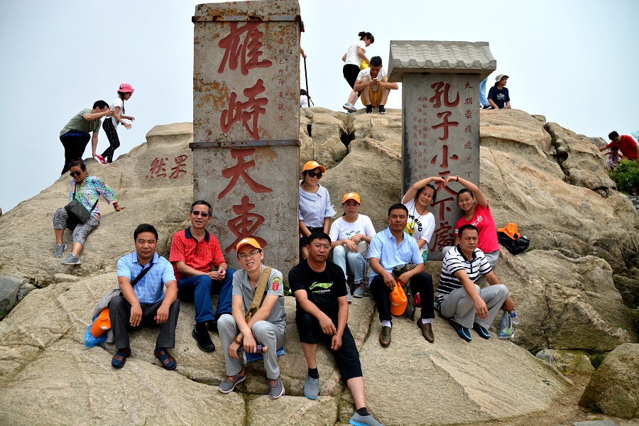 游學的第二站—泰山,世界文化與自然雙重遺產,居于群山之中,細品晨之薄霧,老師們感到無比的暢快和滿足。攀登到最險峻的十八盤時,老師們依舊沒有氣餒繼續(xù)前行,經(jīng)過大約1600級臺階,登上泰山最高天門南天門,老師們親自感受到詩仙李白“天門一長嘯,萬里清風來”的遼闊心境,經(jīng)壯觀的美麗天街以及碧霞祠之后,老師們陸續(xù)登上玉皇頂,泰山的最高峰,體會詩圣杜甫“會當凌絕頂,一覽眾山小”的恢弘意境。