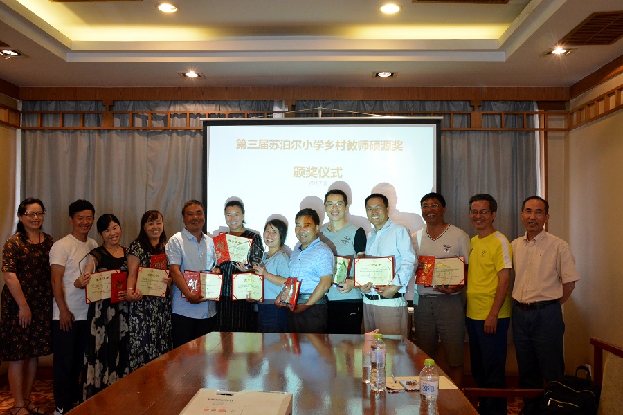 同時,8月5日上午,第三屆蘇泊爾小學鄉(xiāng)村教師碩源獎頒獎儀式暨交流會也在曲阜隆重舉行。來自云南、貴州、四川、青海等中西部7省的9位蘇泊爾小學優(yōu)秀鄉(xiāng)村教師來到這里,和浙江碩源教育基金會汪云傲理事、陳珊珊主任,蘇泊爾小學項目顧問浙大附中施永忠老師、縉云長坑小學劉勇武校長及相關工作人員一起,齊聚一堂,真誠交流。交流會后,基金會理事和兩位項目顧問為各位優(yōu)秀鄉(xiāng)村教師頒獎。