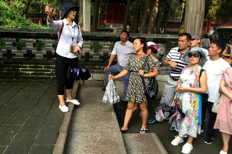游學的第三站是儒家圣地曲阜,作為中華傳統(tǒng)文化的主干與核心,儒家思想和文化早已滲透到中華民族乃至世界的人文血脈中。過萬仞宮墻,走圣人之門,至圣林里拜先師,行走在孔廟、孔府與孔林,如同在觸摸一段段久遠塵封的歷史,又似乎能與先賢對話,感受他那博大深邃的思想光輝。老師們每走一處都仔細聆聽一個個與景觀文物相關的歷史故事,如此壯觀的先賢府邸、墓地和廟宇,老師們參觀時不禁唏噓不已。