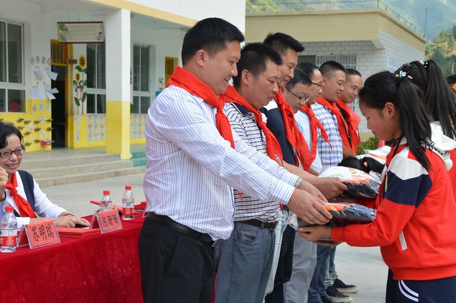 典禮上孩子們穿著的漂亮校服,是貴州各位經銷商伙伴集體捐贈的。因為家里經濟因素的限制,火沖村的孩子們之前還從來沒有過校服,這次貴州區域各經銷商伙伴們慷慨解囊,精心挑選了校服套裝,讓這里的200多個孩子在校園生活中展現更好的風采。