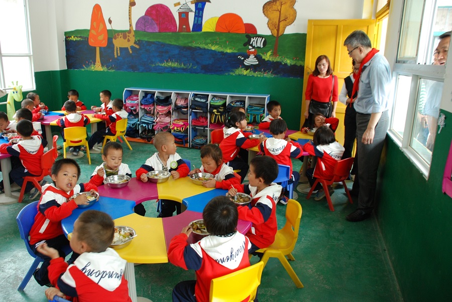 在學校校長和老師的帶領下,蘇總、陳女士及各位經銷商與當地領導一同參觀了校園,了解了老師們的生活,孩子們學習、活動、用餐等情況。走進教室時,孩子們為大家朗誦古詩、唱兒歌、跳歌伴舞。孩子們的天真爛漫,讓大家忍俊不禁。