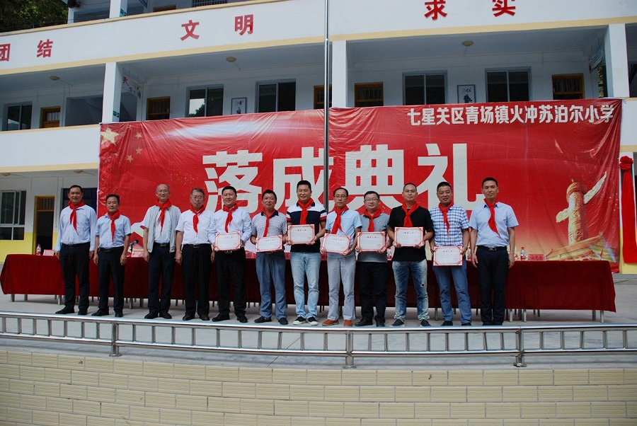 畢節市七星關區相關領導出席典禮,介紹了火沖蘇泊爾小學的建設情況。該校是經蘇泊爾畢節區域經銷商牽線,公司及碩源基金會共同捐資,與當地政府攜手興建的。為表感謝和紀念,當地教育局向公司及各位愛心伙伴授予了捐贈證書。