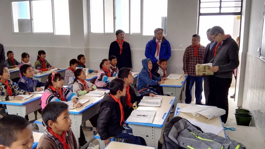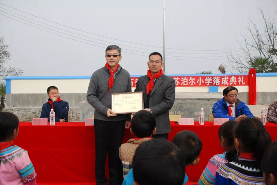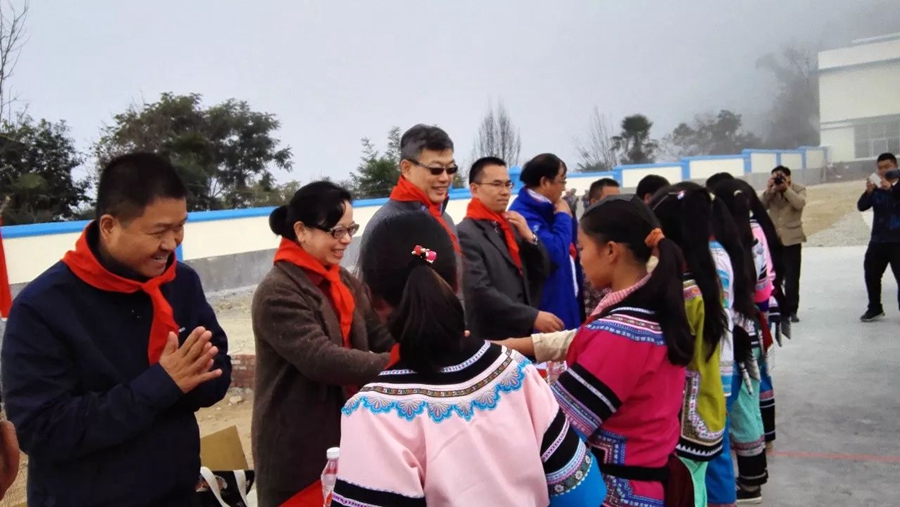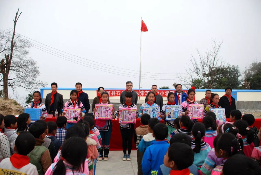 公司蘇總、碩源基金會陳秘書長、云南經銷商伙伴浩帆公司周總、趙總一行,穿越綿綿大山,來到么索村,共同慶祝紅河縣石頭寨鄉么索蘇泊爾小學落成。