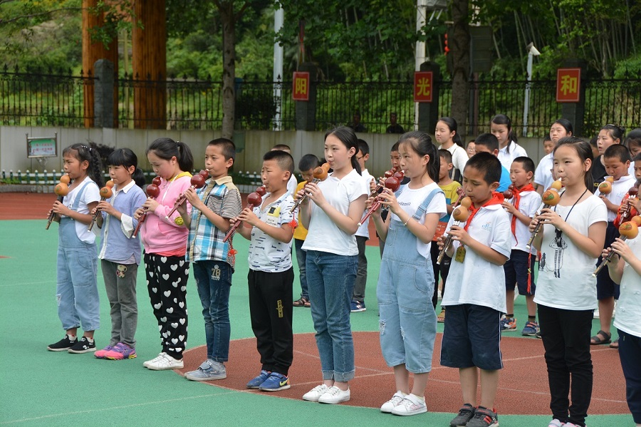 當天的最后一站是大均小學,一進學校們,老師們便被孩子們和全體老師的葫蘆絲齊奏緊緊吸引,一曲《月光下的鳳尾竹》娓娓入耳,悄悄把老師們帶入了校園里的葫蘆文化。該學校以葫蘆為特色,本著吹響葫蘆絲、做強葫蘆娃、做美葫蘆夢的宗旨辦出了豐富多彩的鄉村小學校。