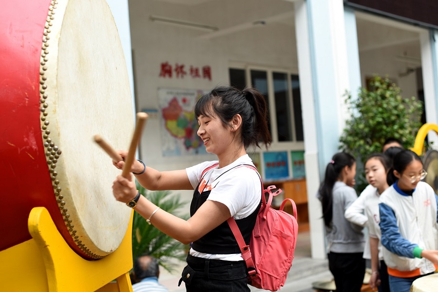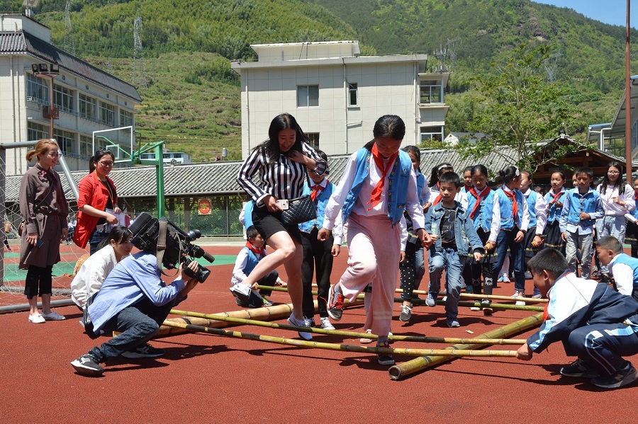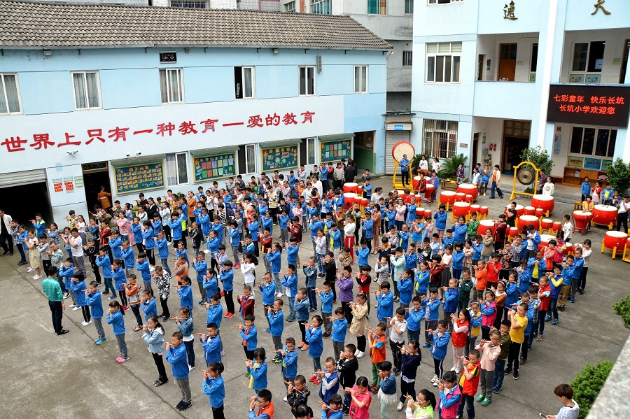 5月4日,在長坑小學和當地教育局的支持下,老師們來到麗水景寧畬族自治縣,分別參觀走訪了當地三所“小而美”的鄉村學校。東坑小學,一所充滿了畬族文化的鄉村“三味”小學校,所謂“三味”是景寧縣當地所倡導特色鄉村教育,分別為鄉土味、小班味、家園味。東坑小學秉著“花樣教育,做最美的自己”的教學理念育人育心,學校不僅在校園文化建設結合了畬族的特點,同時也在大課間活動融入了有趣的畬族色彩。