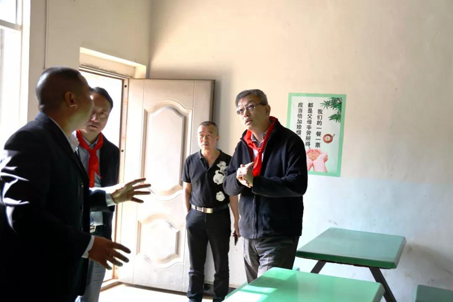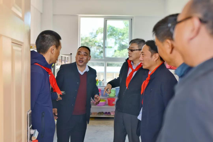 典禮結束后,孩子們陸續返回教室。蘇總、趙董一行在當地領導和學校校長的陪同下,一起參觀了宿舍、教室、食堂等處,詳細了解學生在校情況,并一起為學校工作出謀劃策。