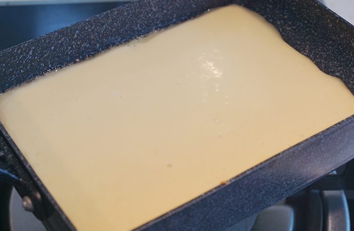 7、把面糊倒入,加入一個雞蛋,攪碎,撒鹽