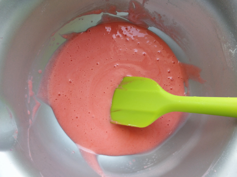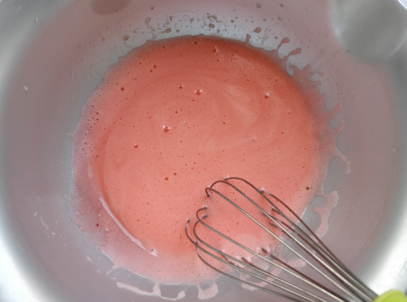 1. 水和食用色素可以用等量的紅心火龍果汁代替,或者在紫甘藍(lán)汁中滴兩滴白醋,將其變成酸性的紅色,用來給蛋糕卷上色也是極好的。