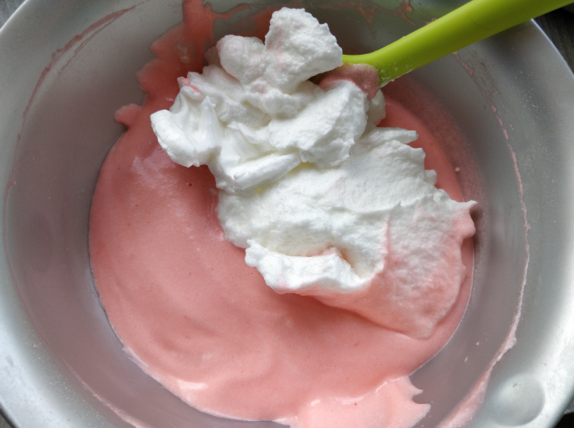 9. 再加入三分之一的蛋清,重復(fù)上一步驟。