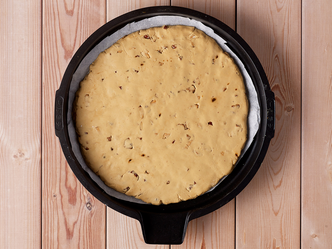 3、升降高度調節至20mm,選擇“蛋糕”功能,預熱結束后,鋪一層烘焙紙,倒入一半面糊,開始煎烤;