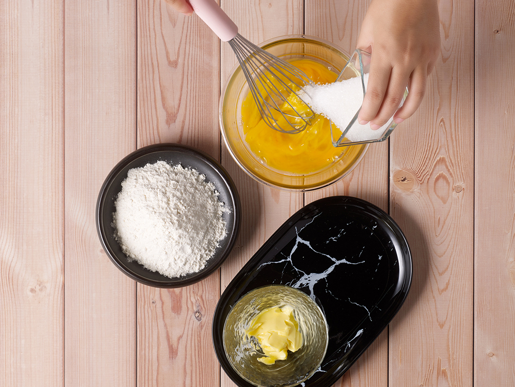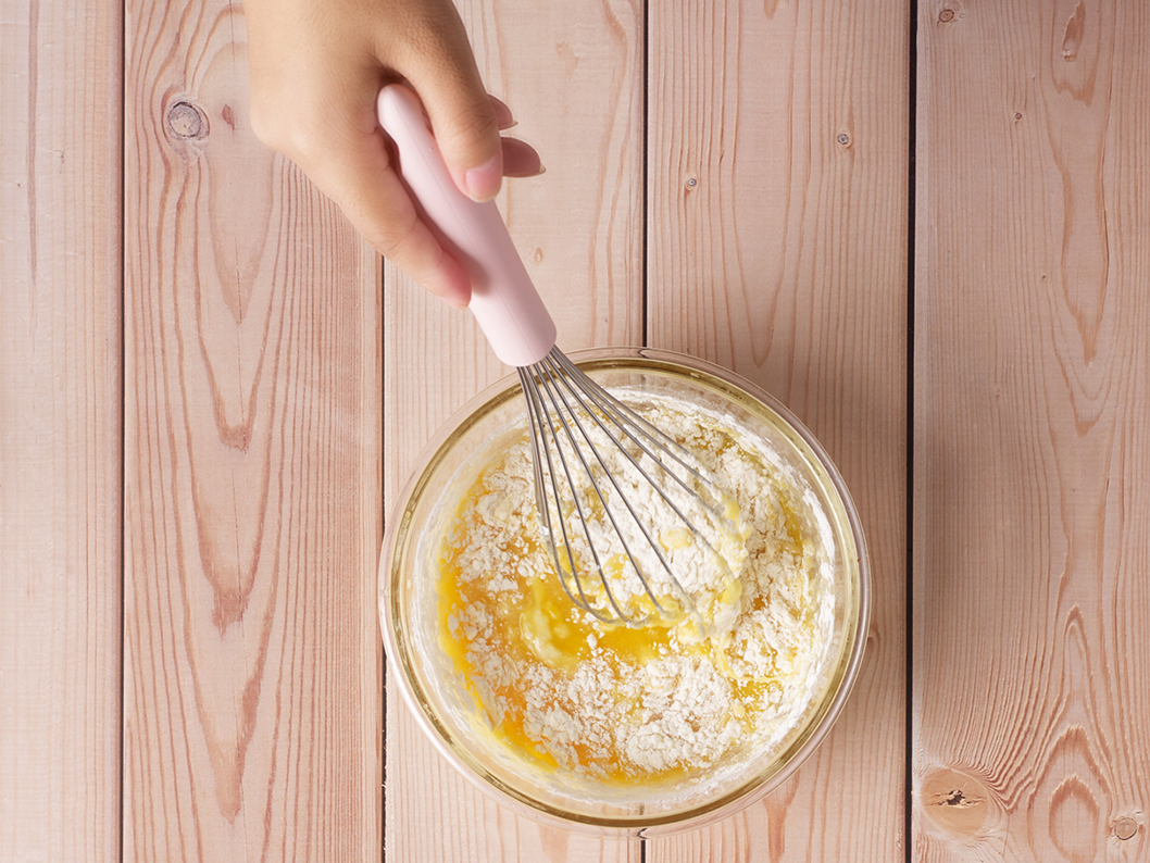 1、糖粉、軟化的黃油放入容器,用打蛋器充分?jǐn)嚢杈鶆?,加入牛奶和鹽,用打蛋器低速攪拌均勻;