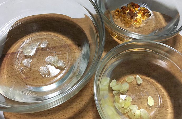 1、雪燕5g、桃膠5g、皂角米5g分別入容器內加純凈水浸泡12個小時