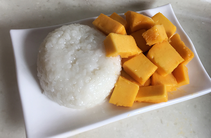 芒果糯米飯是用芒果、糯米制作的一道泰式主食。芒果能降低膽固醇,常食芒果有利於防治心血管疾病,有益於視力,能潤澤皮膚,是女士們的美容佳果。芒果糯米飯是用芒果、糯米制作的一道泰式主食。芒果能降低膽固醇,常食芒果有利於防治心血管疾病,有益於視力,能潤澤皮膚,是女士們的美容佳果。