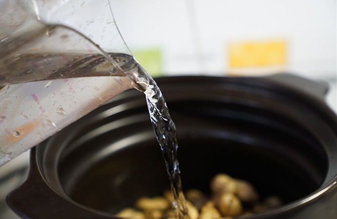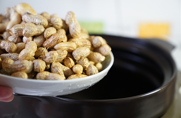 煮,這款鍋上次我是用來做干焗,今天就用它來煮。用它煮花生水量不用太大,因?yàn)檫@款鍋