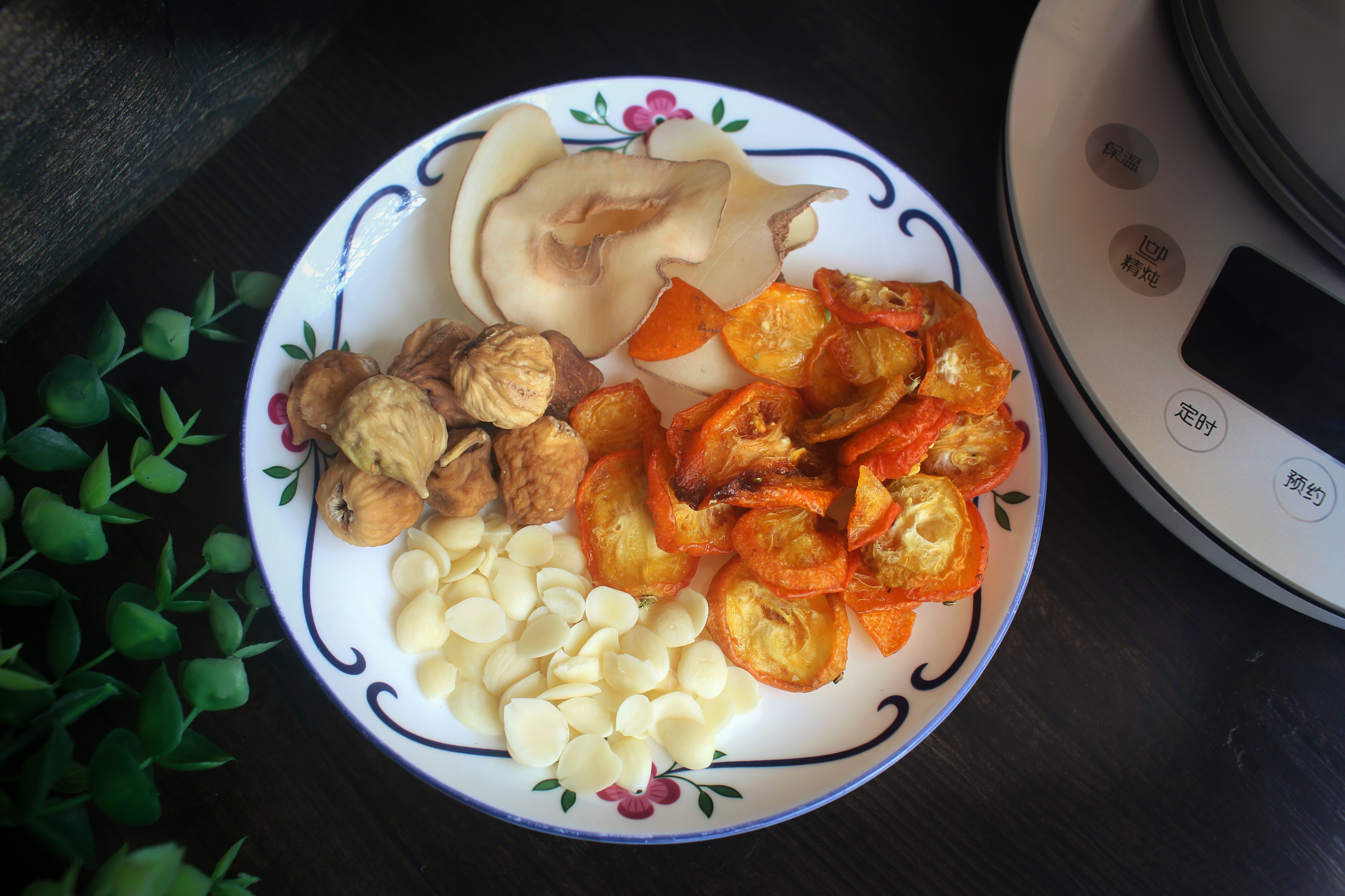 金桔干25克,杏仁4克(或雪梨干4-5片),無(wú)花果20克,海底椰3克