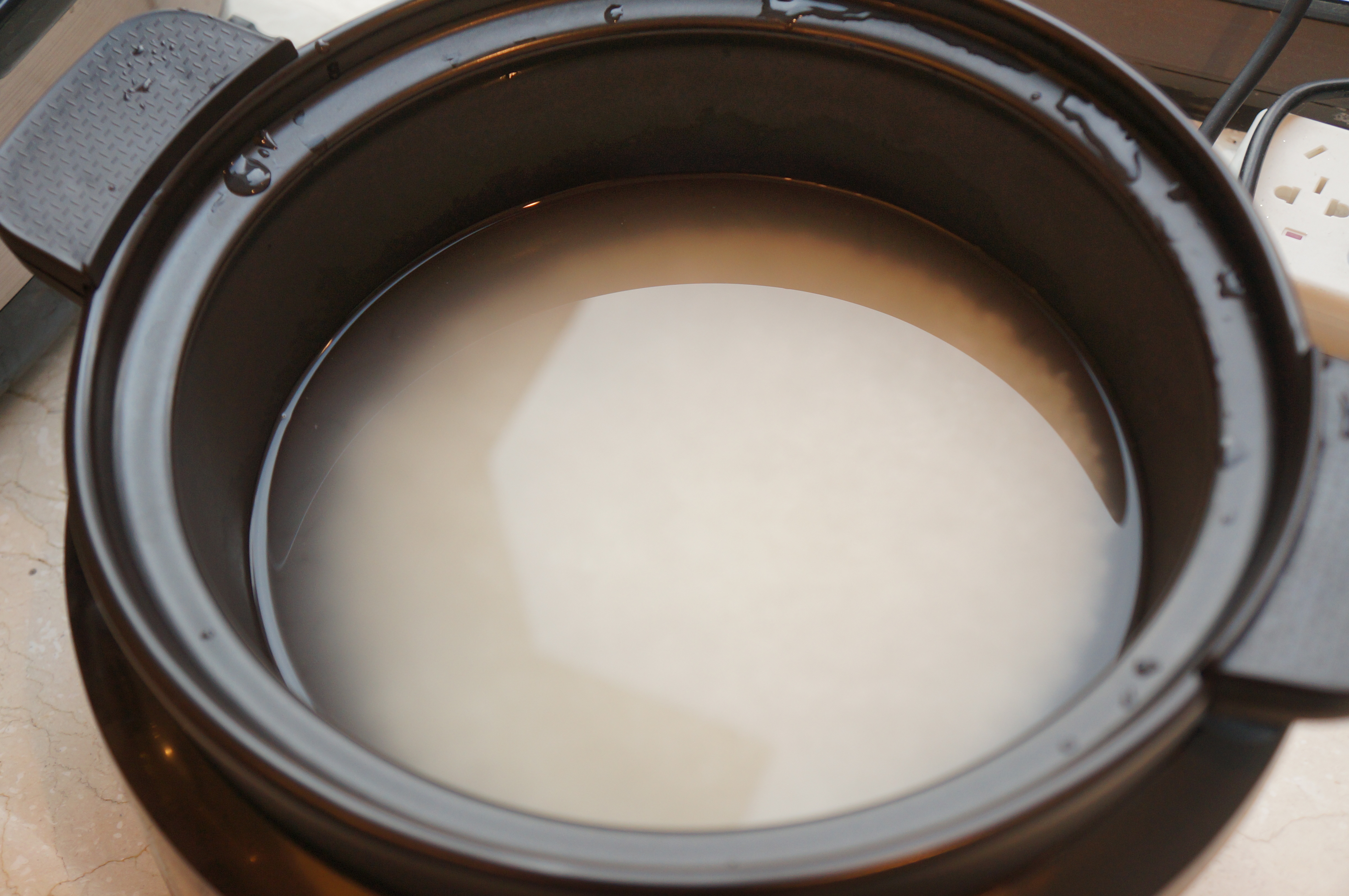 4. 米洗凈,放入蘇泊爾電砂鍋中,加入適量水。