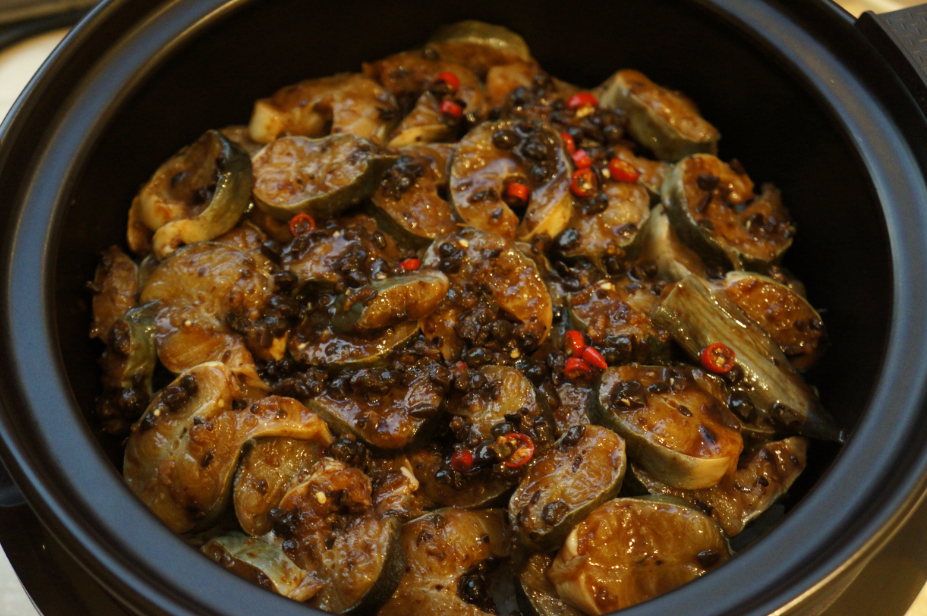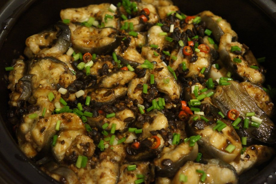 3. 將豆豉、小紅椒、2/3的蒜蓉、糖、生抽、一半油與河鰻拌勻備用。