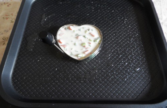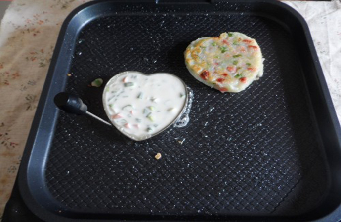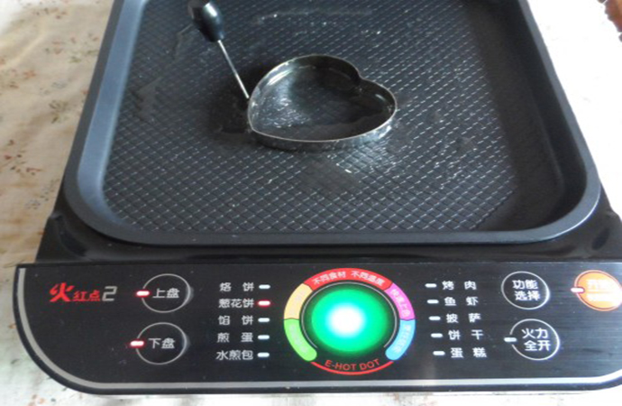 5.蔥花餅預熱煎烤機,刷油,煎蛋器也要抹上油