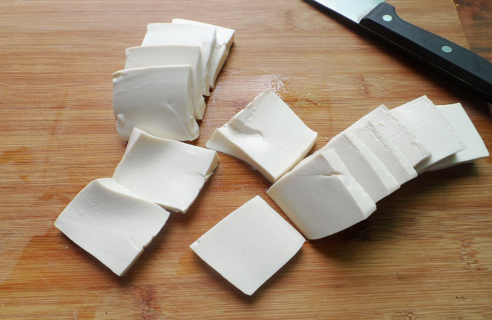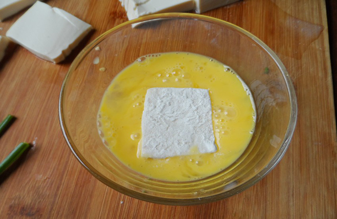 1.豆腐用清水浸泡10分鐘,瀝干水分,切成塊狀