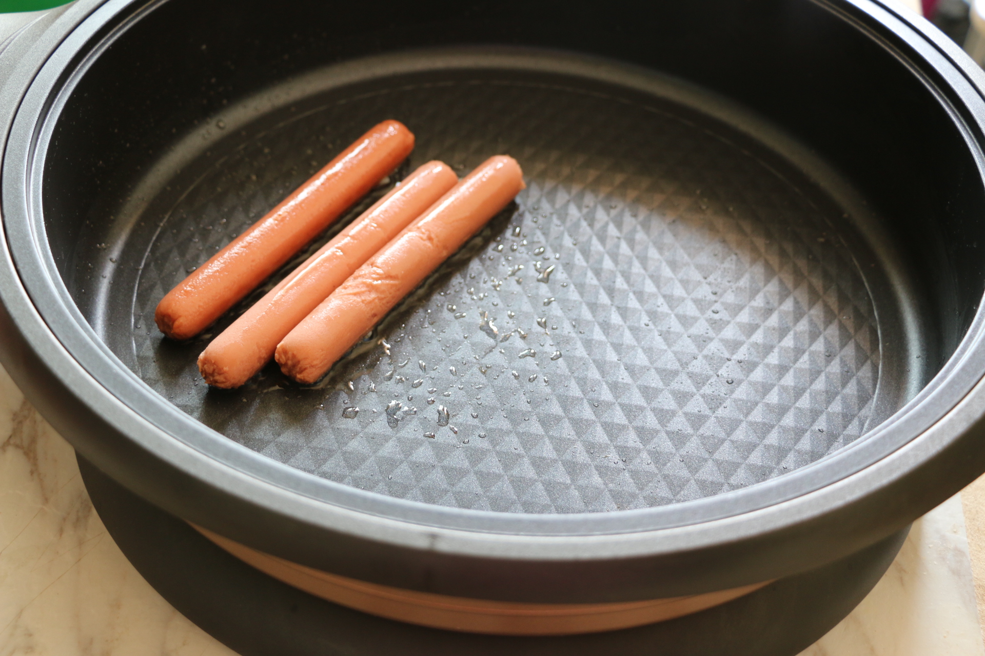 3.蘇泊爾煎烤機預熱,倒入少許油