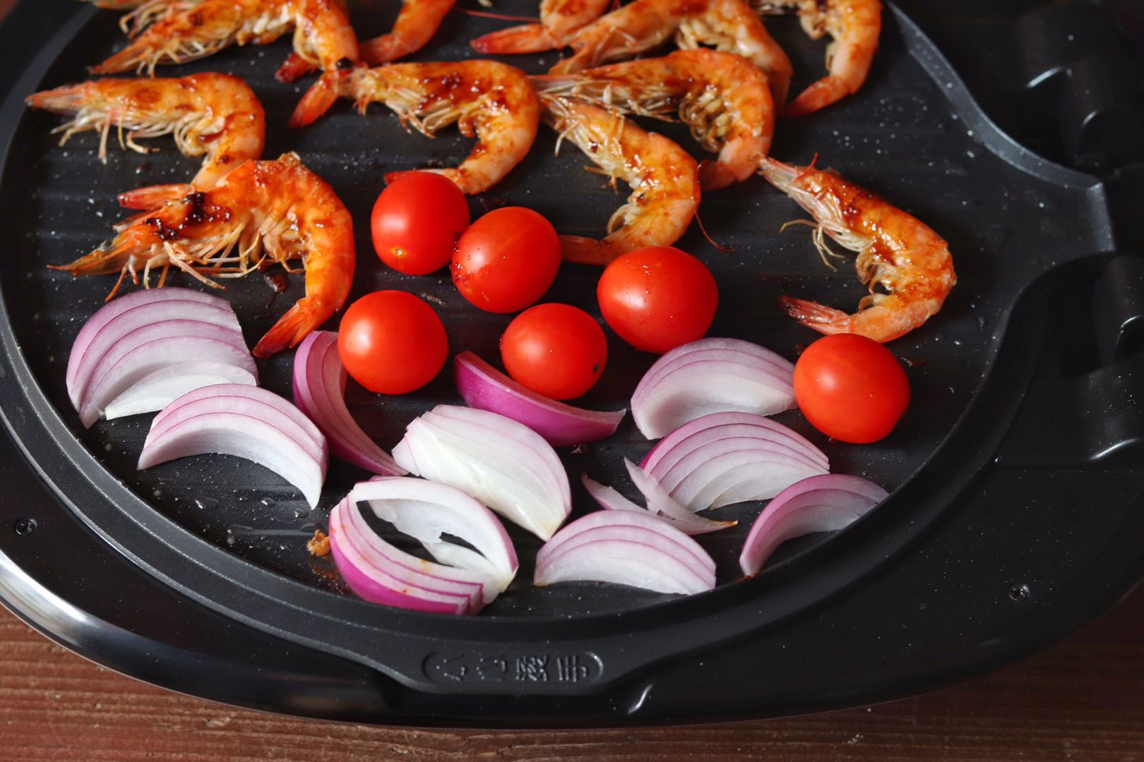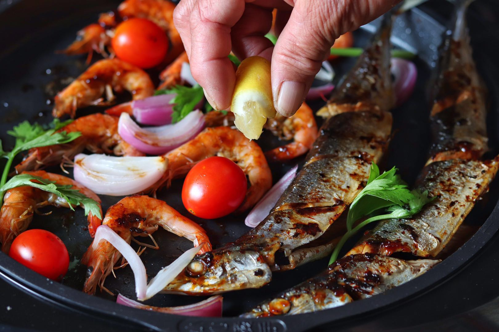 4、把蝦與魚分開煎烤,以免熟與不熟混在一起