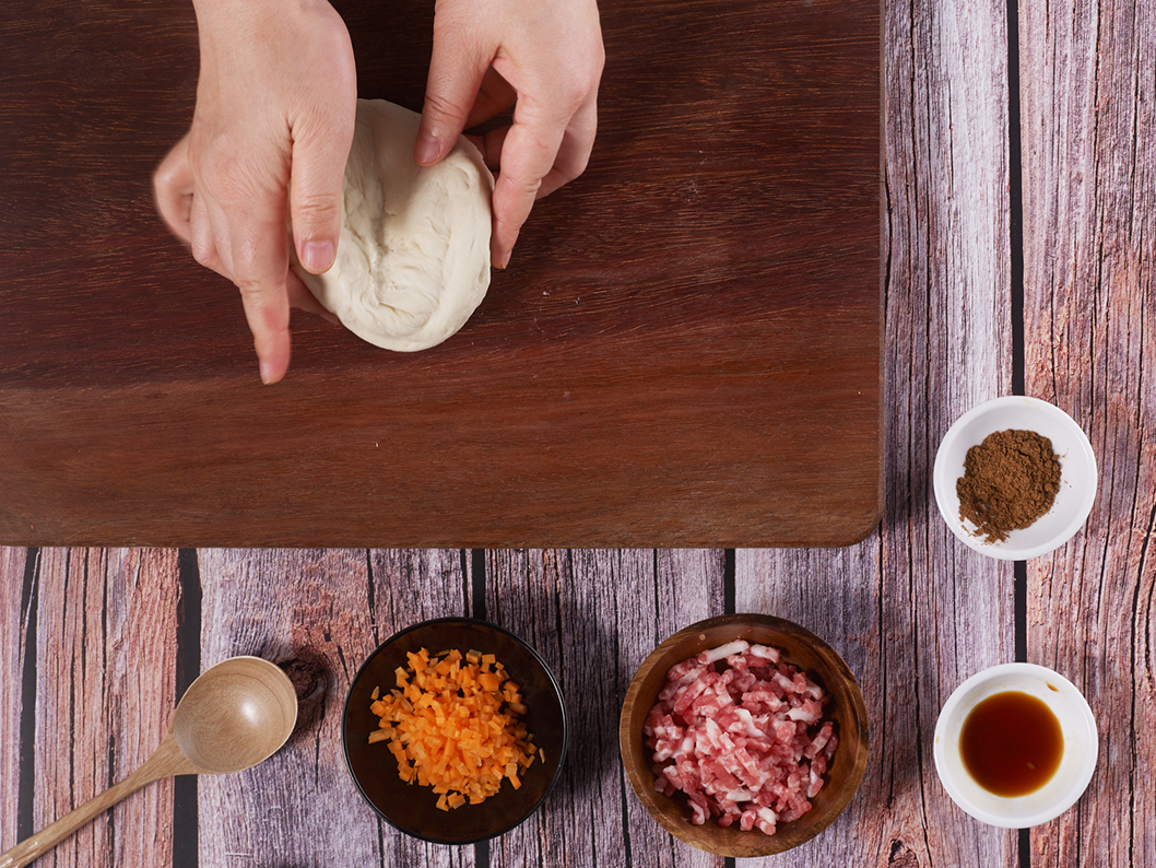 1、酵母粉、適量溫水和成面團,溫暖的環境下發酵2小時;