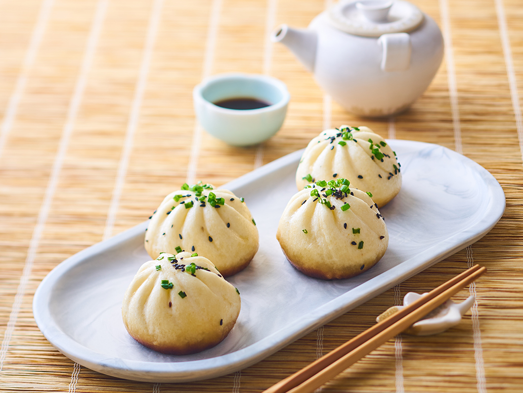 5、升降高度調節至35mm,選擇“水煎包”功能,預熱后放入包子,煎3分鐘后淋入面粉水,燜置水干,淋少許油;
