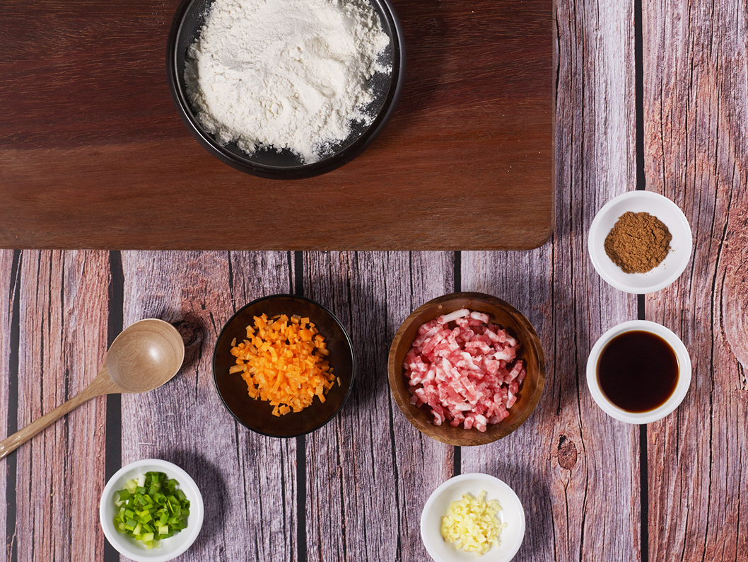 配料:溫水260g、花生油15g、鹽10g、蔥15g、姜15g、生抽1勺、老抽1勺、耗油1勺、酵母4g、白糖半勺、芝麻油1小勺