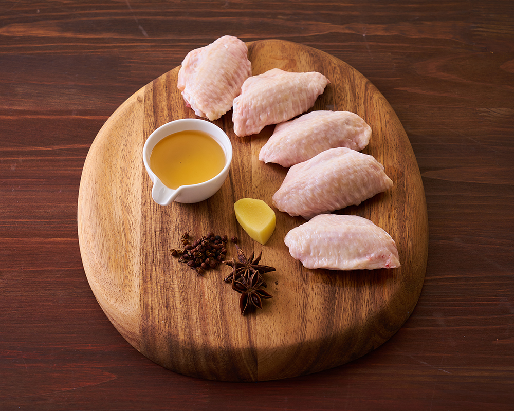 1、洗凈的雞翅背面劃幾道口,焯水后,倒入檸檬汁、五香粉、鹽、料酒和生抽,腌制2小時;