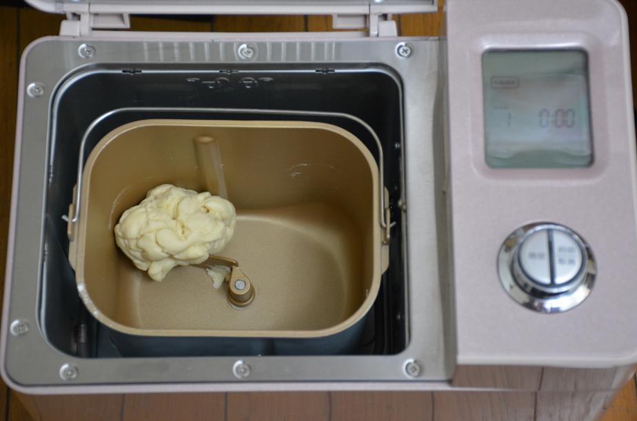 1、面粉和酵母、玉米油、細(xì)砂糖和牛奶放入面包機(jī)桶,揉至面團(tuán)無(wú)顆粒光滑。