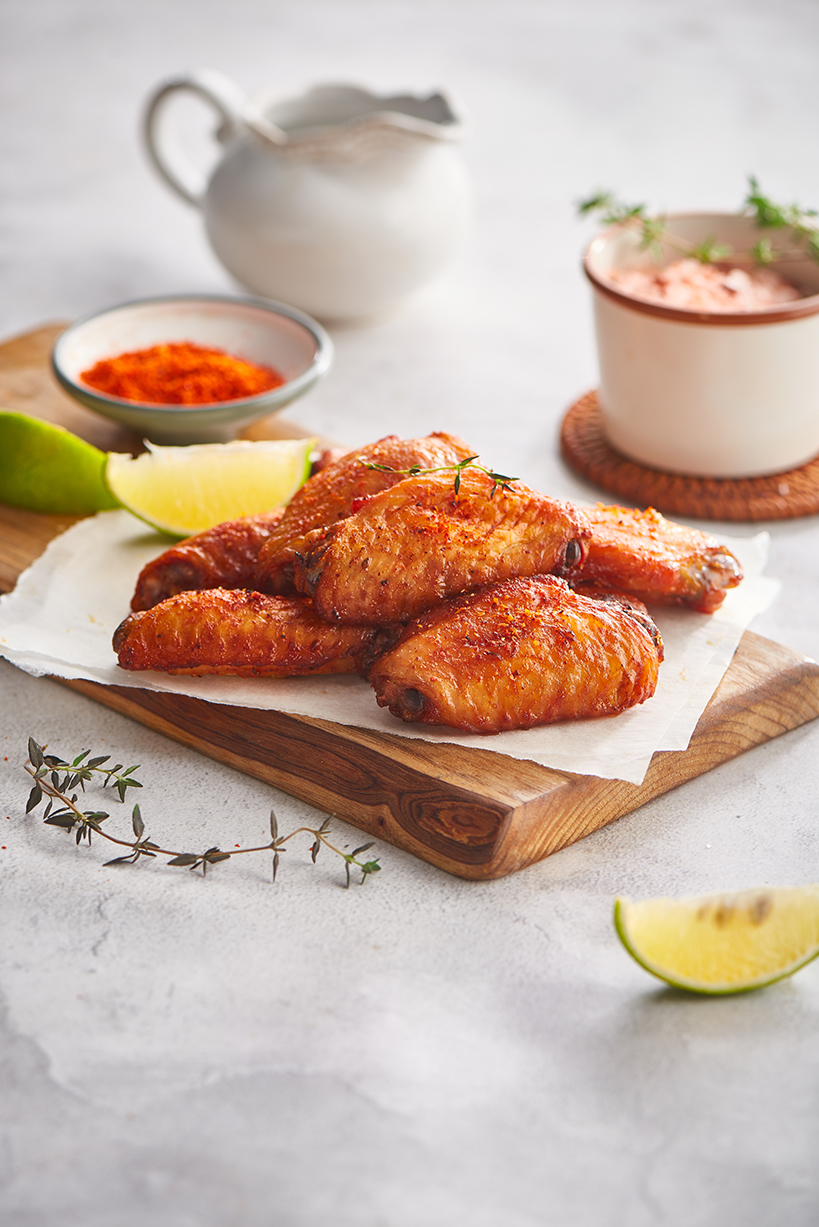 在烤籃注水區(qū)中加水,平鋪放入雞翅,蓋烘烤蓋。