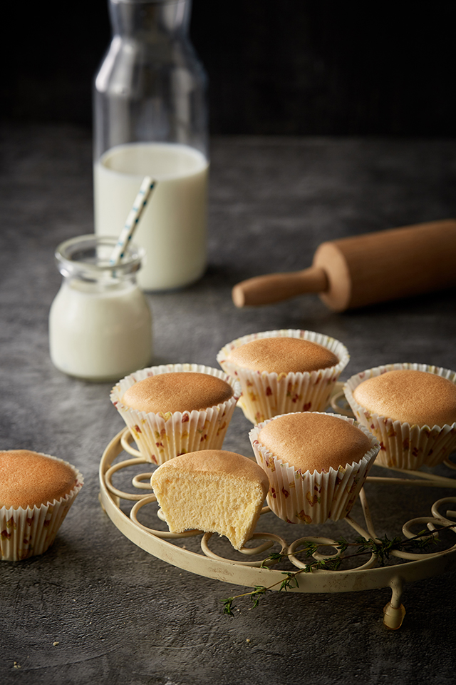 用小勺或裱花袋將面糊裝入紙杯,5、6層滿