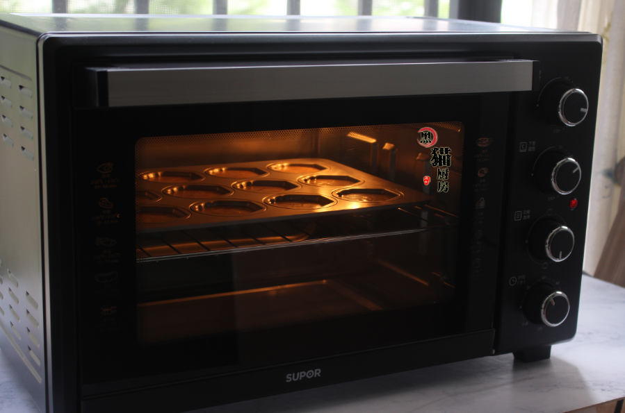 8.烤箱預熱后,烤盤放入中層,選擇上下管功能,180度,烘烤時間約16-18分鐘,注意觀察表面上色情況,上下都呈金黃色即可出爐了。