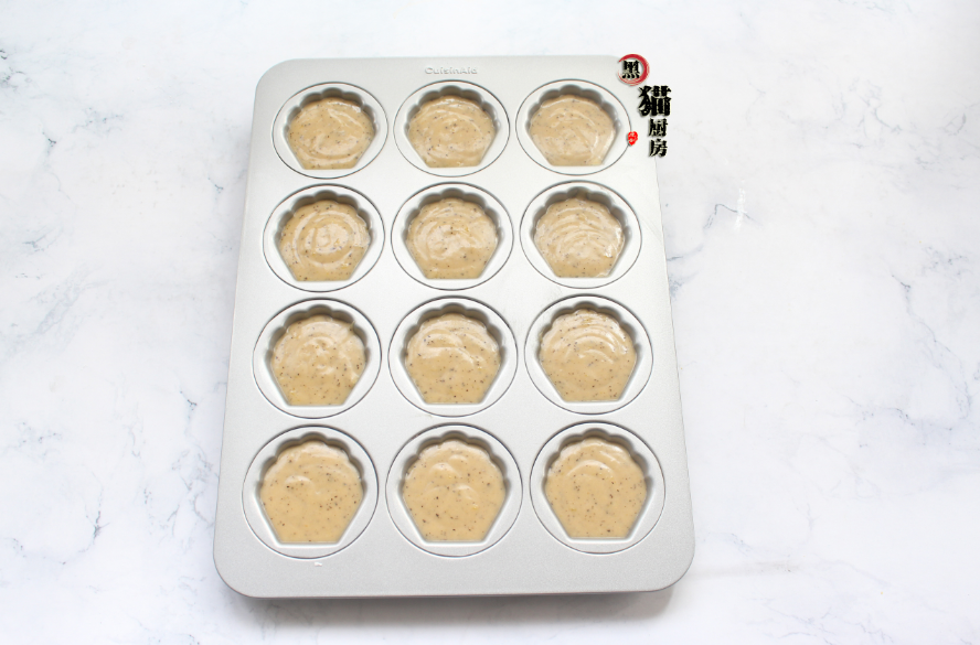 7.最后把冷藏過的面糊擠入模具內,大約8分滿即可。這個時候烤箱要提前預熱了。