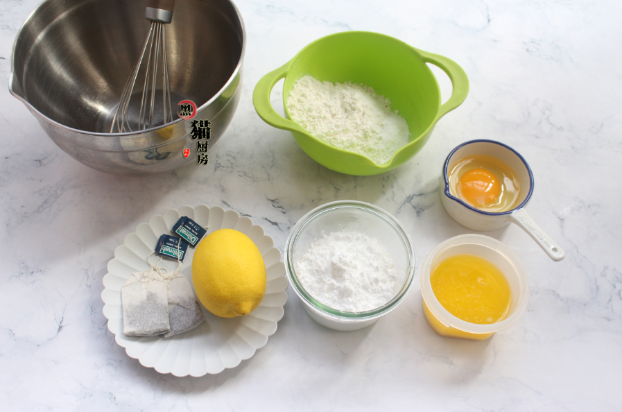 食材:錫蘭紅茶水50克,紅茶渣3克,雞蛋一個(約50克),低筋面粉85克,糖粉85克,泡打粉3克,黃油85克,檸檬皮屑適量。