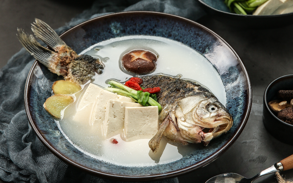 新鮮鯽魚(yú) 1條 絹豆腐 1盒 香菇 100克 生姜 10克 小蔥 20克 枸杞 6 粒 料酒 20克 白胡椒粉 2克 鹽少許