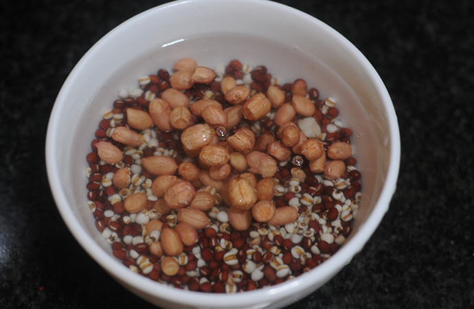 【輔料】:花生米1把、紅豆1把、清水半鍋、蜂蜜適量