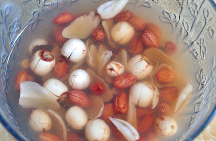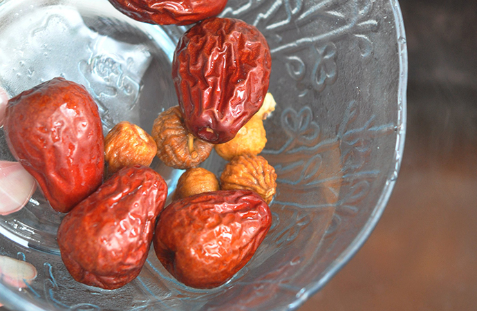 百合具有清心安神的作用,服食百合可以既方便又安全地緩解人們的緊張心理,改善睡眠,增進食欲。蓮子中所含的棉子糖,是老少皆宜的滋補品,對于久病、產后或老年體虛者,更是常用營養佳品,如果買的蓮子含有蓮心,有清熱瀉火之功能,還有顯著的強心作用。薏米有促進新陳代謝和減輕胃腸負擔的作用,可作為病中或病后體弱患者的滋補食品。經常食用薏米食品對慢性腸炎、消化不良等癥也有較好效果。紅豆、紅棗和花生都有很好的補血效果。無花果所含的脂肪酶、水解酶等有降低血脂和分解血脂的功能,可減少脂肪在血管內的沉積,進而起到降血壓、預防冠心病的作用。