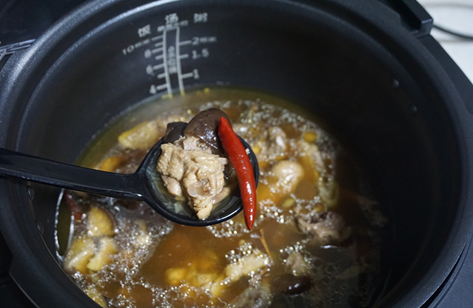 7.短短的20分鐘時間,噴香的香菇燉雞就做好了,而且這款鮮呼吸電壓力鍋,自動排壓,如果你中間補充食材或調味料,還有貼心設計的中途加菜,保證不同食材的最佳口感;