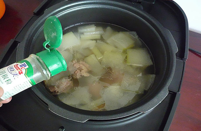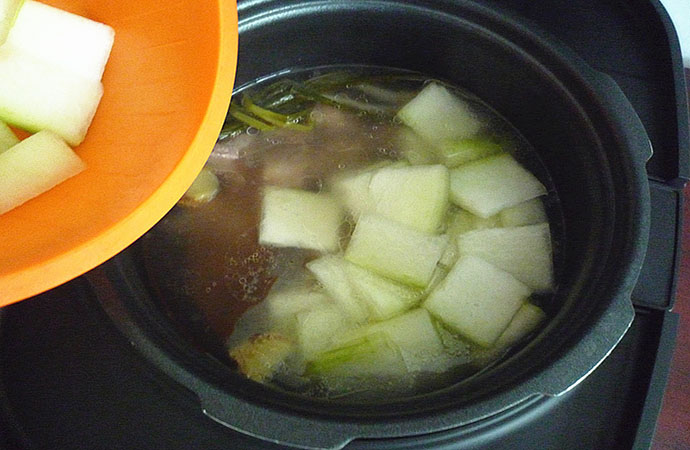 7.中途提示加菜音,打開蓋子加入切好的冬瓜,再次按開始鍵