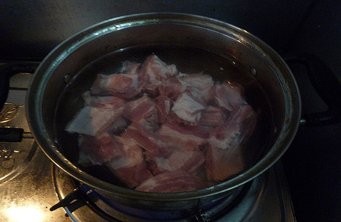 1.豬小排洗凈,鍋中放水燒開,下豬排汆出血水,水沸后撇去浮沫